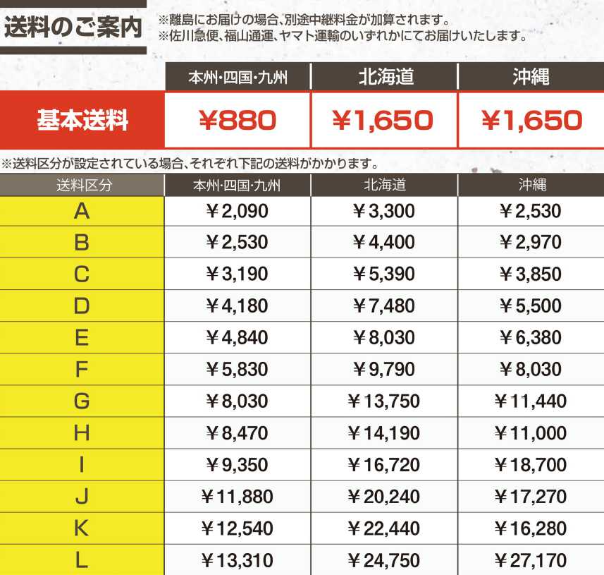 送料一覧表