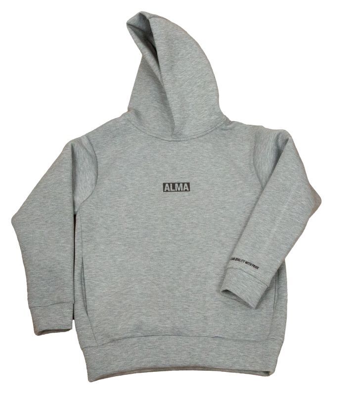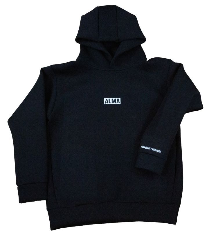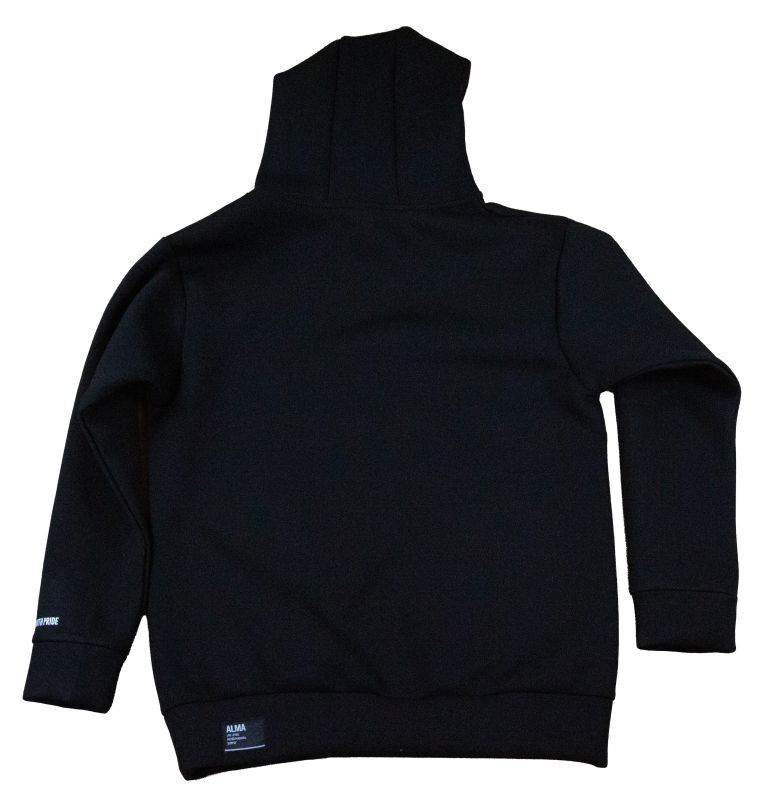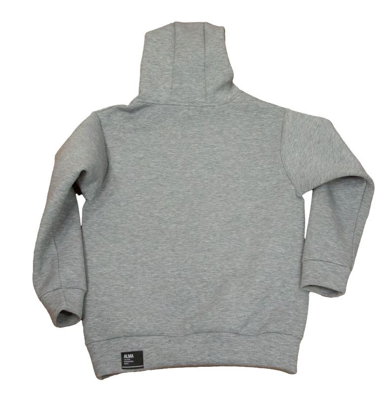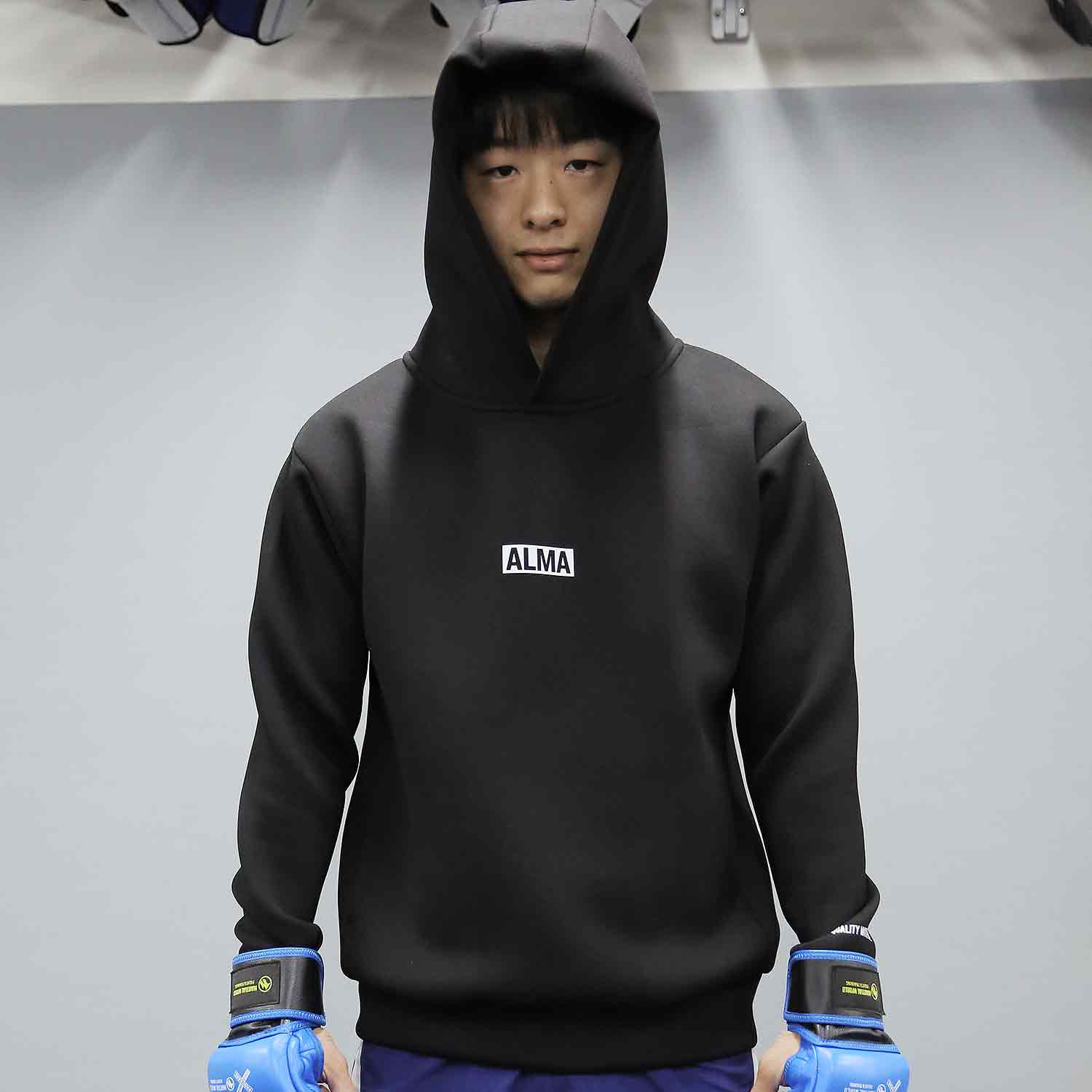 フード紐を無くし、立体感を出すための縫製、袖口や裾口は身頃と共生地を仕様、