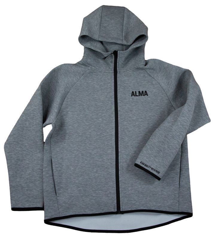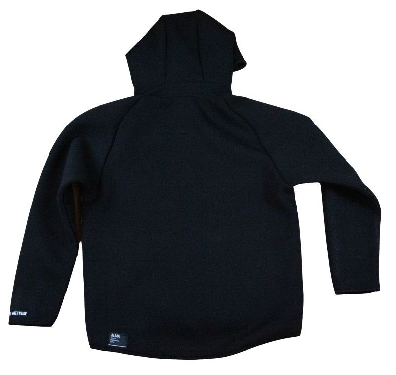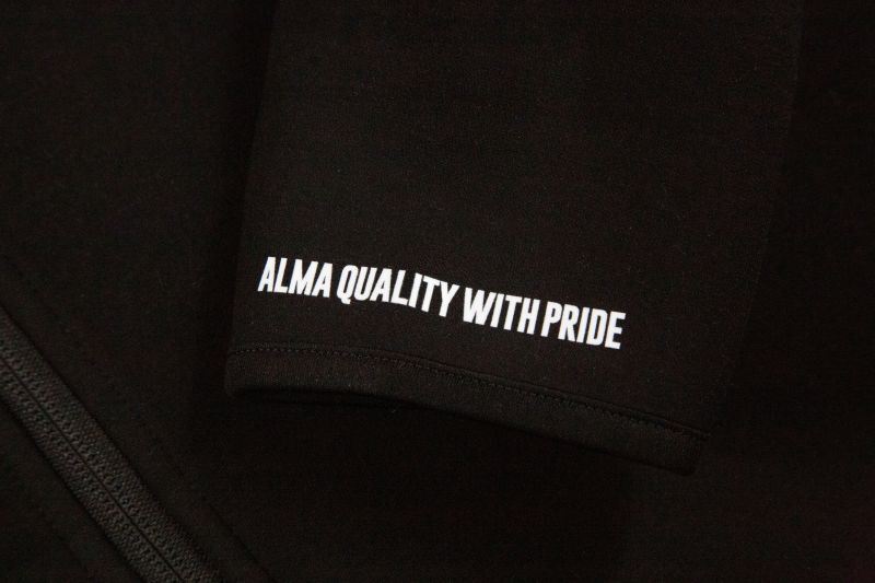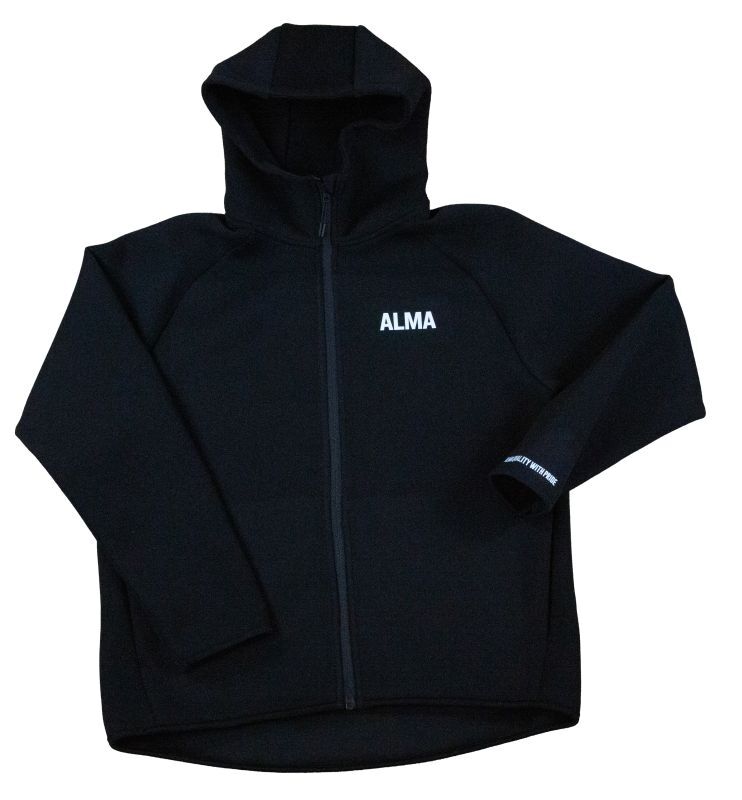 デザインはシンプルなALMA Logoとし、ボディには光沢があり3層構造のダンボールニット生地を使用。